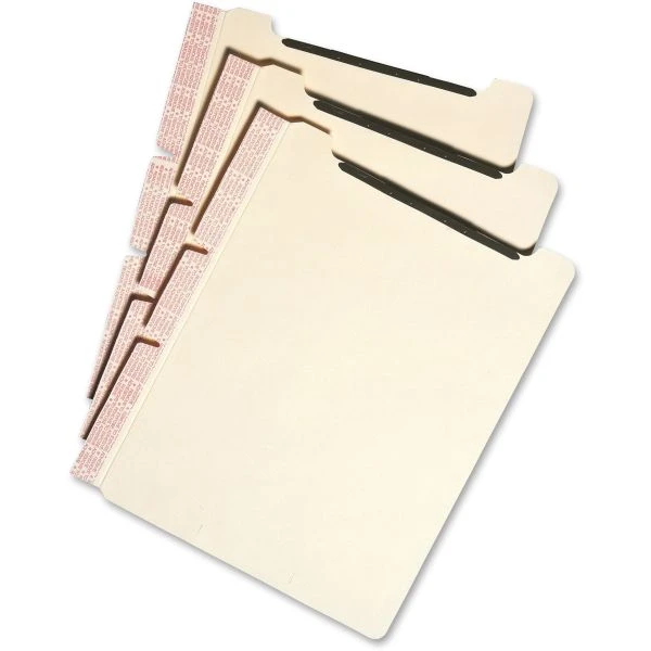 Smead Self-Adhesive Folder Dividers with Twin-Prong Fasteners for Top/End Tab Folders, 1 Fastener, Letter Size, Manila, 25/Pack – Self-adhesive dividers with a twin-prong fastener transform standard end-tab or top-tab folders into divided or classification folders. Made of heavyweight, 11 point manila stock, dividers feature standard, 2-3/4 slit punching. Dividers are hinge-slotted to fit around fasteners in folder. 1″ twin-prong fastener with prongs on both sides of the divider adds more filing surfaces. Simply peel back the protective strip and press the adhesive hinged flap into the folder or binder.”