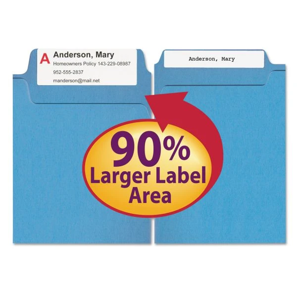 - Designed with tabs that have 90% more labeling area for improved labeling.