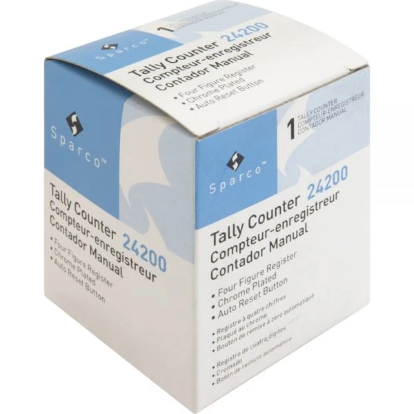 Sparco Tally Counters – Tally counter with base offers a four-figure register and a finger ring to hold it comfortably. Nickel-plated and precision engineered. Displays white numbers on black background. Tally counter features an automatic reset button and can be removed from its base with a Phillips Head screwdriver.