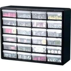 Advantus Super Stacker Divided Storage Box, 5 Sections, 7.5″ X 10.13″ X 6.5″, Clear/Blue