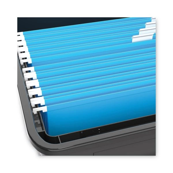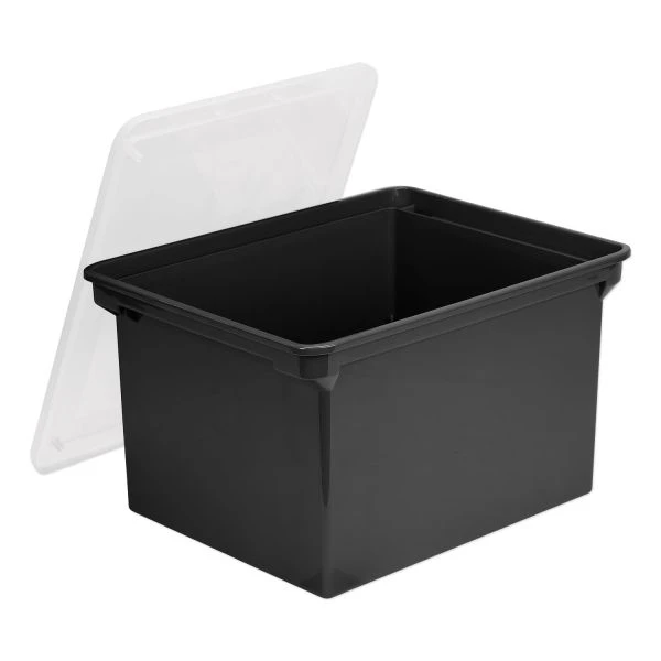 Storex Plastic File Tote, Letter/Legal Files, 18.5″ x 14.25″ x 10.88″, Black/Clear – For storage that needs to be quick and simple there’s the Storex Storage Tote. Accommodating of hanging folders and water-resistant, the storage tote is a great alternative to cardboard banker boxes. The snap on lid or locking handles ensure that tote contents stay put through tosses and tumbles.
