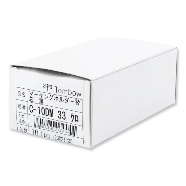 Tombow Mechanical Wax-Based Marking Pencil Refills. 4.4 mm, Black, 10/Box – Versatile wax-based marking pencil refills ensure smooth, legible writing on a variety of surfaces. Use on both porous and non-porous surfaces, such as ceramics, stone, wood, glass, rubber, plastic, textiles, metal, coated paper, cardboard and more. Wax-based medium is water-resistant and works great on both dark and transparent surfaces. Easily erase from non-porous surfaces by wiping with a damp cloth. No sharpening required—perfect for craftsmen and professional use in industrial environments. Compatible with Tombow Mechanical Wax-Based Marking Pencils.