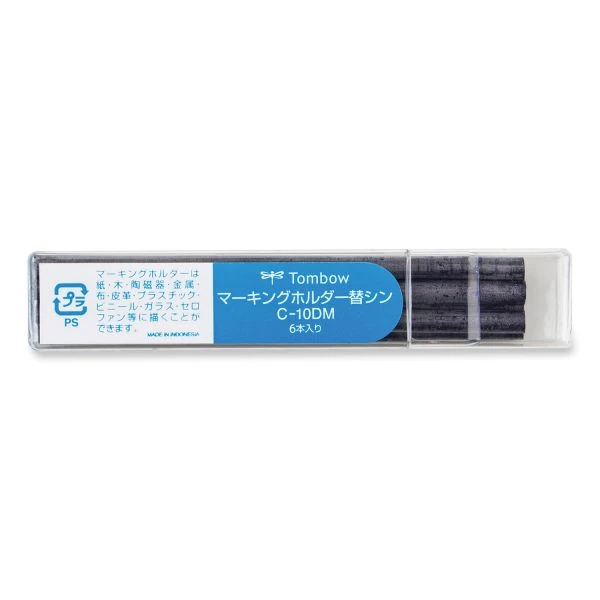 Tombow Mechanical Wax-Based Marking Pencil Refills, 4.4 mm, Blue, 10/Box – Versatile wax-based marking pencil refills ensure smooth, legible writing on a variety of surfaces. Use on both porous and non-porous surfaces, such as ceramics, stone, wood, glass, rubber, plastic, textiles, metal, coated paper, cardboard and more. Wax-based medium is water-resistant and works great on both dark and transparent surfaces. Easily erase from non-porous surfaces by wiping with a damp cloth. No sharpening required—perfect for craftsmen and professional use in industrial environments. Compatible with Tombow Mechanical Wax-Based Marking Pencils.