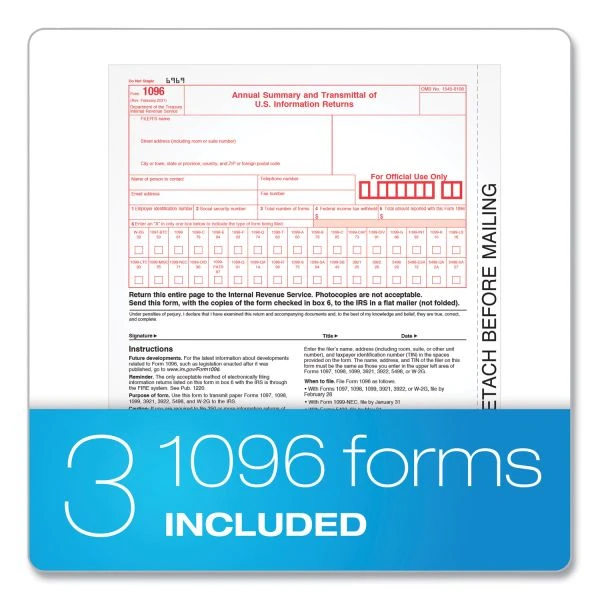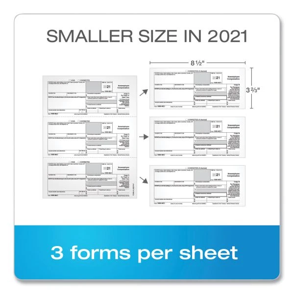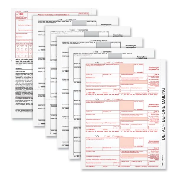 - Provides 50, 5-part 1099-NEC inkjet/laser sets and three 1096 summary forms.
