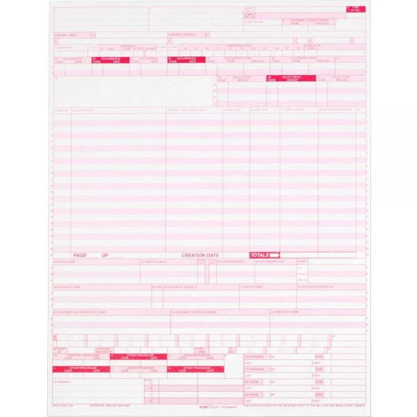 TOPS UB04 Hospital Insurance Claim Form for Laser Printers, One-Part (No Copies), 8.5 x 11, 2,500 Forms Total – UB-04 laser-cut forms are designed for medical offices to file a claim with the patient’s insurance company. The Health Care Finance Administration format ensures accuracy in reporting all necessary information. Forms meet the requirements of the Centers for Medicare and Medicaid Services (CMS). Forms are printed on 20 lb. bond paper.