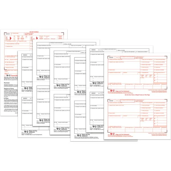 - Includes W-2 inkjet/laser sets and W-3 summary forms.