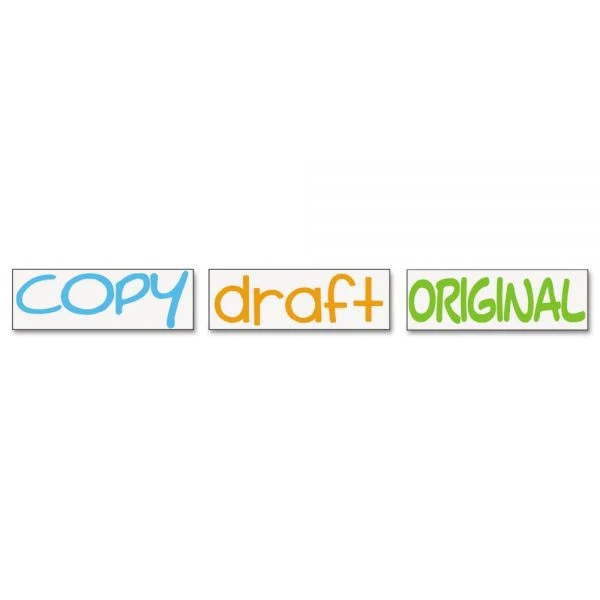 Trodat Interlocking Stack Stamp, COPY, DRAFT, ORIGINAL, 1.81″ x 0.63″, Assorted Fluorescent Ink – Innovative design allows you to interlock multiple stamps in one continuous stack. Convenient for storage and effortless use. Vibrant, fluorescent ink colors and fresh fonts provide style. Crisp, clean impressions from the microporous gel. Ink lasts for up to 50,000 impressions.