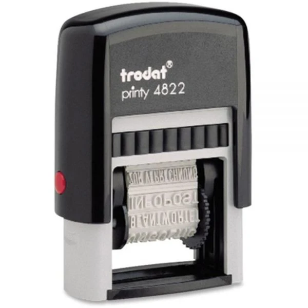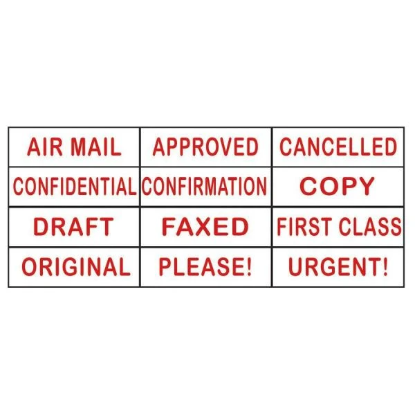 - Hold 12 popular messages in one convenient, compact self-inking stamp.