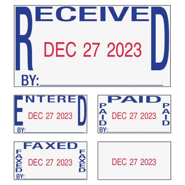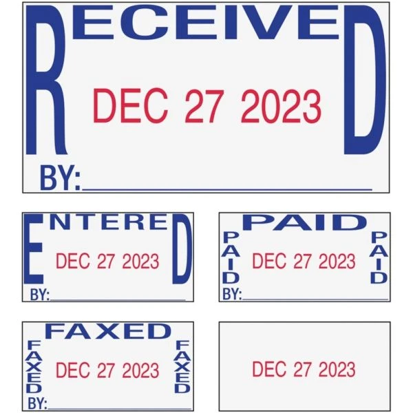 Trodat Professional 5-in-1 Date Stamp, Self-Inking, 1 x 1.63, Blue/Red – Save space and money with this versatile dater that is actually five stamps in one! Use the date alone or add one of the four interchangeable phrases for emphasis. Steel frame construction for heavy-duty use. Four bands produce 10 years of dates for many years of service. Date band cover ensures your fingers remain clean. Includes stamp pad that delivers up to 10,000 impressions; easily replaced to extend the life of the stamp.