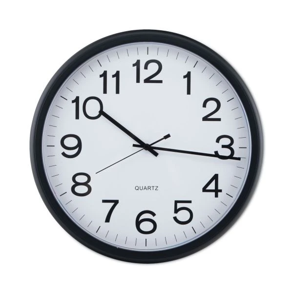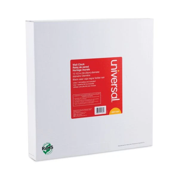 Universal Round Wall Clock, 13.5″ Overall Diameter, Black Case, 1 AA (sold separately) – Large face makes this classic, round clock easy to read from a distance. The clean text style provides an elegant simplicity. Features hour, minute, and second hands for precise reading. Designed to get the most out of every battery. Quartz movement helps ensure accuracy. Crystal clear, plastic face is extremely durable and shatter resistant. Uses 1 AA battery (sold separately).