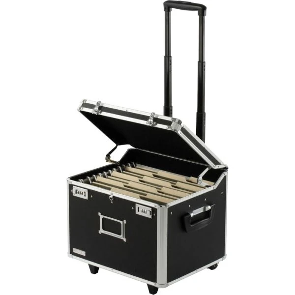 Vaultz Locking Mobile File Chest, Letter/Legal Files, 17.5″ x 15.5″ x 14.5″, Black/Chrome – HIPAA-compliant locking file chest holds letter-size or legal-size hanging file folders. Offers double combination locks for security. Telescoping handle and heavy-duty wheels make this item mobile. File chest has handles on sides for easy carrying. Internal dimensions are 15-1/4″ wide x 12-1/4″ deep x 11-3/10″ high.
