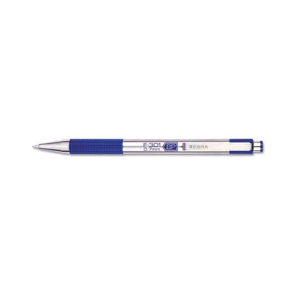 Zebra F-301 Ballpoint Pen, Retractable, Fine 0.7 mm, Blue Ink, Stainless Steel/Blue Barrel – Retractable ballpoint pen features a no-slip grip for writing comfort. Stylish design offers stainless steel barrel. Fine point. Refillable with Zebra’s F-Refill.